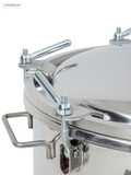 Корпус изготовлен из пищевой нержавеющей стали AISI 304. Этот сплав устойчив к коррозии, не вступает в реакцию с продуктами и легко очищается. Толщина стенок обеспечивает прочность, надёжность и долговечность прибора. Благодаря качественным материалам автоклав сохраняет презентабельный вид даже после многих лет активной эксплуатации.