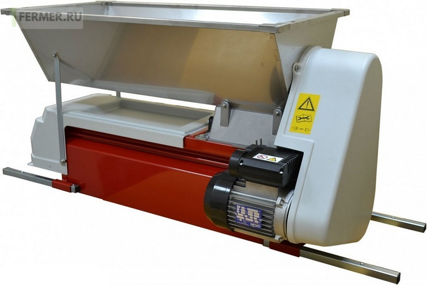 Гребнеотделитель позволяет отделить гребень от винограда, обмять виноград и, благодаря установленному на нём мезга насосу, перемещать выходной продукт в ёмкость.