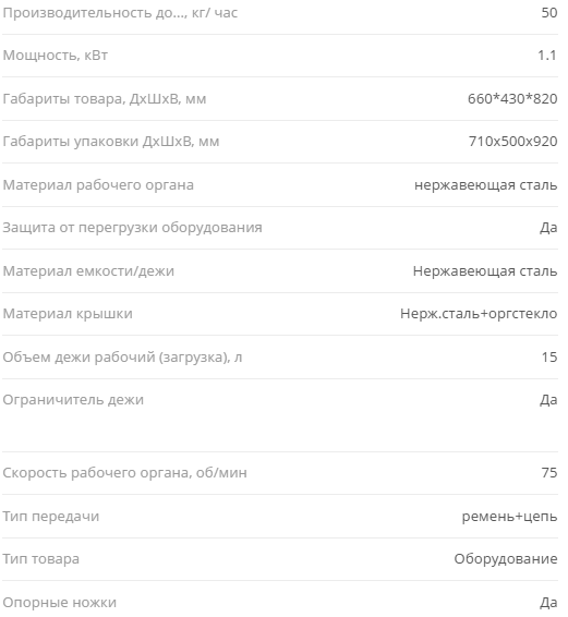 Детали машины, контактирующие с пищевыми продуктами, изготовлены из нержавеющей стали.