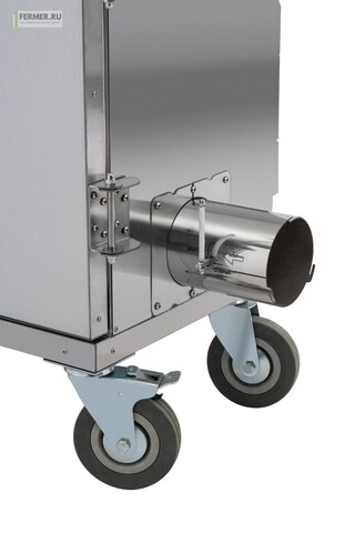 - Бустер (тепловентилятор) - это прибор, с помощью которого обогревается поступаемый воздух в термокамеру. При окружающей среде 15-20 гр. - бустер выдает постоянно 40 гр. тепла, ускоряя время отепления. А также, подсушивает воздух, тем самым ускоряя и этап сушки. Размещается Бустер на трубу входа воздуха. Мощность Бустера - 750 Вт.