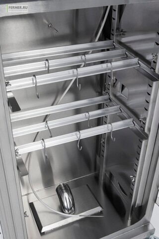Парогенератор является важной составляющей данной термокамеры. В нашем случае, он встроенный, что обеспечивает 100% влажность в любой точке термокамеры. Для таких продуктов, как колбаса, грудинка (где жесткая кожа требует смягчения), рульки и окорок, варка является необходимым этапом. Без этого процесса невозможно добиться желаемого результата.