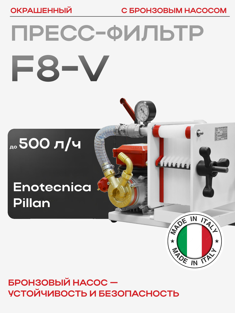 Пресс-фильтр позволит избавится от кропотливого снятия с осадка. Можно настроить степень очистки жидкости с помощью фильтровального картона (грубая очистка, осветляющая очистка, стерилизующая очистка, фильтры есть в наличии).