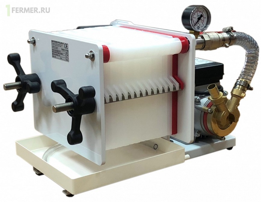 Пресс-фильтр позволит избавится от кропотливого снятия с осадка. Можно настроить степень очистки жидкости с помощью фильтровального картона (грубая очистка, осветляющая очистка, стерилизующая очистка, фильтры есть в наличии).