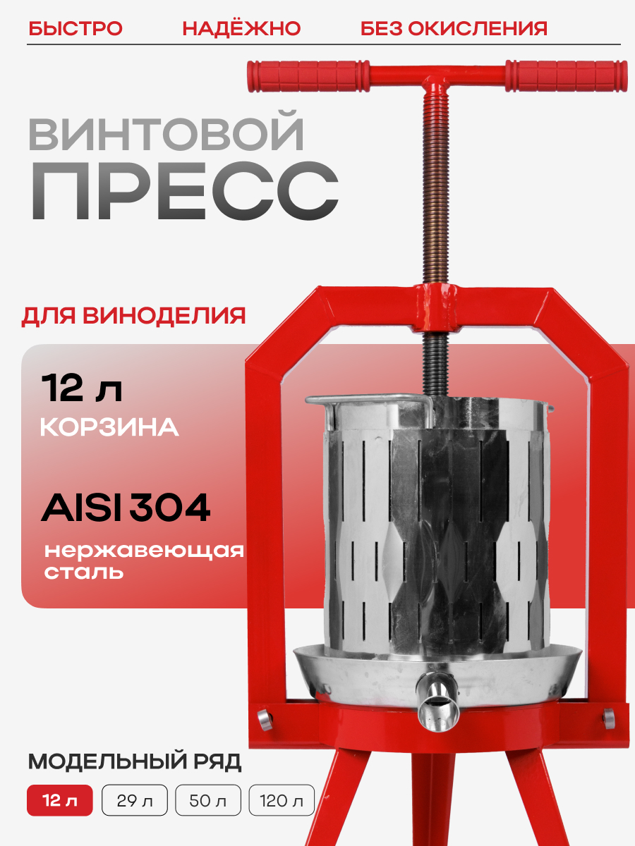 Винтовой пресс «Муромец» из нержавеющей стали (антикоррозионная сталь) для отжима сока из винограда, яблок, груши, свеклы и других овощей и фруктов.