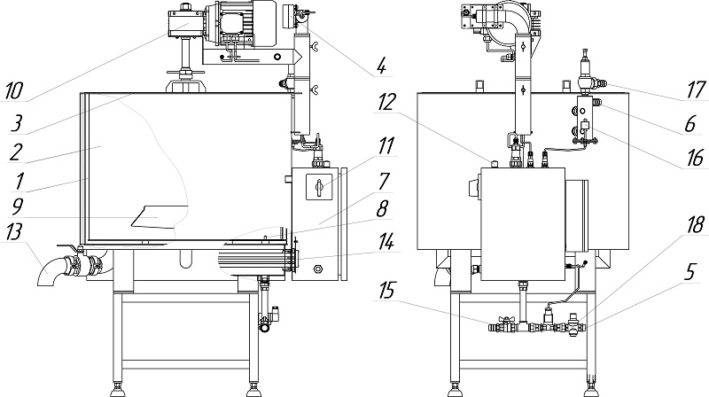 - Для повышения энергоэффективности и безопасности оператора, на предмет ожогов от емкости, предусмотрена теплоизоляция водяной рубашки от внешней среды