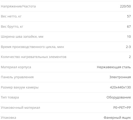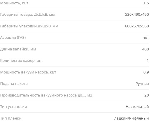 Тип использования материала – мягкие упаковочные материалы (вакуумный пакет РР, PE, PET).